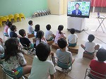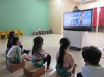 田辺幼稚園の動画が流れると、「あっ、私!」「僕、映ってる!」「〇〇くんだ!」などと、喜んでいました。