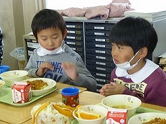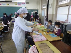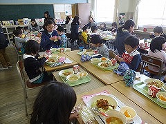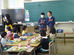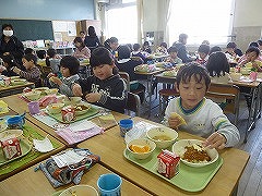 3月5日田辺小学校に年長すみれ組が給食体験に行きました。