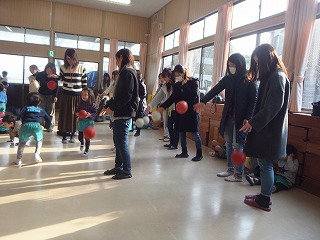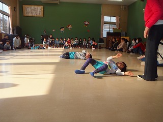 ごろんごろんところがったり、うさぎさんになってぴょんぴょんジャンプしたり、体のバランスを育てる遊びは、子ども達が大好きな遊びです。おうちの方に見てもらってとても嬉しそうな様子でした。