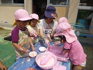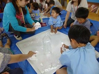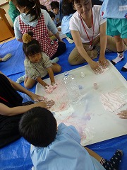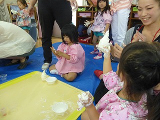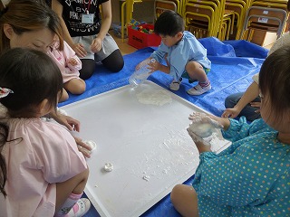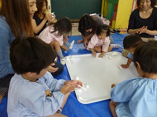 先生や友達と色混ぜや、感触遊びを繰り返し楽しみました