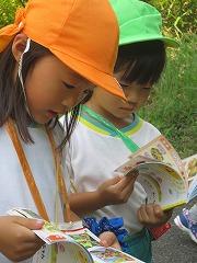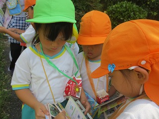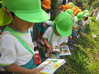 花や野菜を見つける度に、図鑑をみて友達同士で