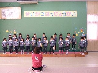 2月11日(土)に幼稚園のホールで生活発表会を行いました。各クラスがそれぞれに歌や劇を楽しみました。幼児ならではのいきいきとした表現はすてきですね。