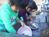 子どもたちは、もち米を洗い、当日を楽しみに!!