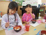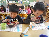 と3歳の子どもたちは初めて食べて、驚いていました。