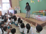 わらべうたあそびを楽しみにしていた子ども達は、わらべうたの先生が来られると、「おはようございます!」とにこにこ笑顔で挨拶をしていました。