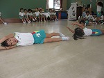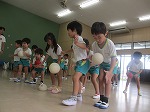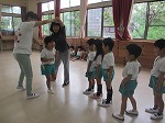 先生や友達と一緒にわらべうたのリズムに合わせて体を動かしたり、触れ合ったりして遊び、とても楽しそうな子ども達でした。