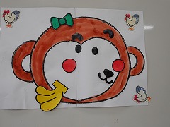 みんなで力を合わせておサルさんのかわいい顔が完成しました