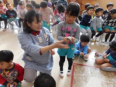 「あ!せんせいすごい」「へんなとこ転がっていった!」