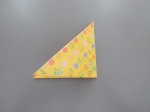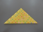 ①まず、折り紙を三角に折ります。