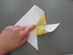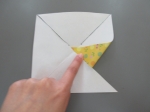 ②折った折り紙をさらに半分に折ります。