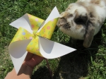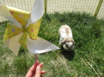 クルクル回る風車に、クッキーくんも興味津々♪