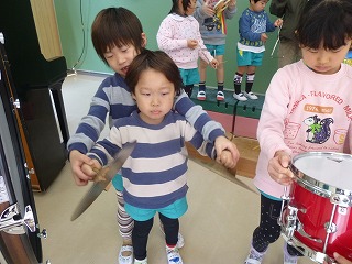 シンバルはちょっと重いかな?一生懸命な顔がかっこよく見えます。
