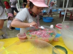 石鹸と泡立てネットで作ったふわふわの泡と絵の具を混ぜ混ぜ~!