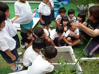 みんなで植えて小さな田んぼが出来上がりました。これからどんどん育っていくのを子どもたちと楽しみにしています。