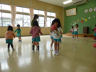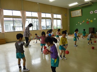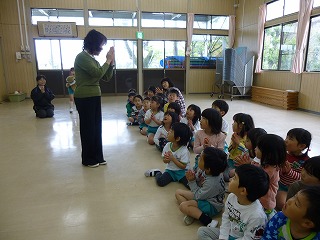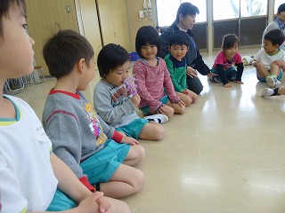 3歳児の時も教えていただいているため、何をするのか、興味津々の子ども達。