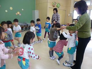 今年度も、毎月1度わらべうたの先生に幼稚園へ来ていただき、わらべうた遊びを教えていただきます。