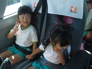 バスの中でもウキウキです。