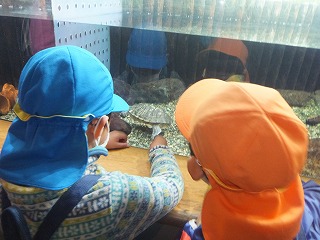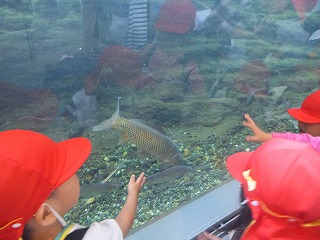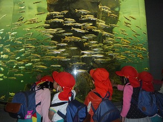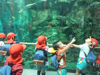 大きな魚をみたりみんなでお弁当を食べたり