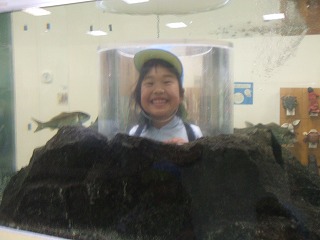 「水槽の中に入れるー」といい笑顔でこんにちわ!