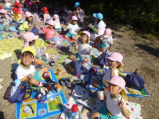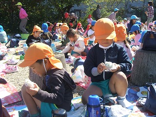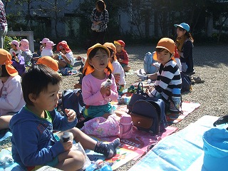 いい天気に恵まれてみんなで外でお弁当を食べました。