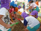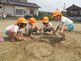友達と泥んこ遊びをしたり、体操をしたり、砂場で大きな山を作って、水を