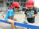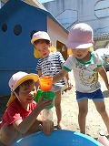 そして、子どもたちの大好きな水遊びも始まっています。毎日、子どもたちの