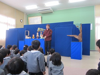 京劇の方に来ていただいて、人形劇を見ました。