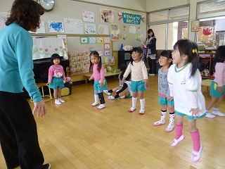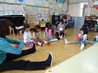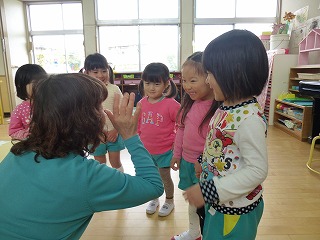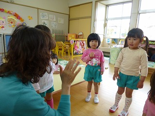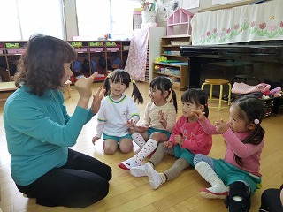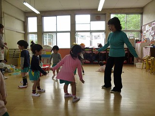 4月30日(水) 3歳はじめてのわらべ唄遊びをしました。