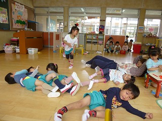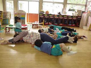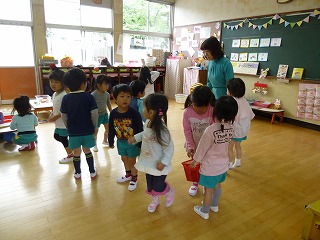 わらべ唄遊び楽しかったねー。みんなからたくさん笑顔が見られました。