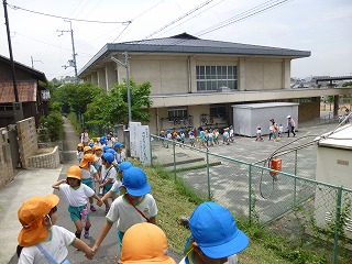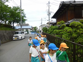 どんな消防車があるか楽しみにしながら、消防署まで歩いて行きました。
