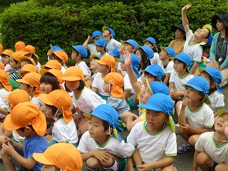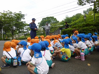 消防士さんのお話を聞く子ども達。これから何が始まるのか楽しみな様子。