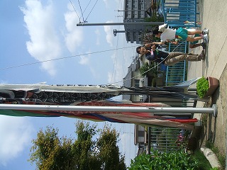 5月2日こどもの日の集いをしました。晴天の中、こいのぼりをあげ