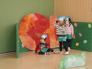 年少もも組は、劇「てぶくろ」