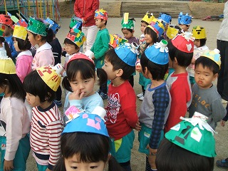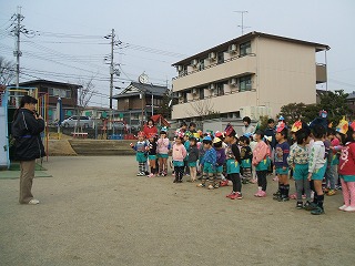 最初に、園長先生から豆まきの由来や、なぜ豆をまくのかなどお話を聞きました。