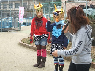 ドンドンドンドンドン・・・たいこの音とともに赤鬼、青鬼がやってきました。