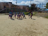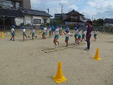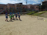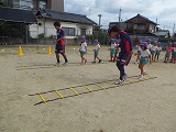 サンガ・キッズつながり隊のコーチの方が、田辺幼稚園の子どもたちにうんどう遊びの楽しさを伝えに来てくれました。