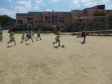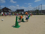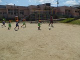 3チームに分かれてボールを追いかけます。