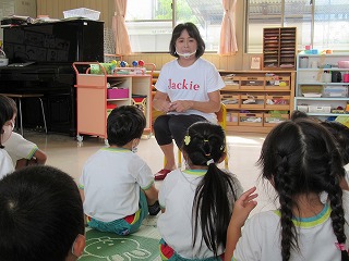 楽しくテンポ良い語り口調に、聞き入っている子ども達です。