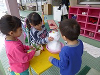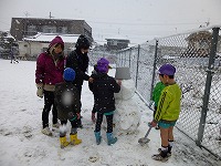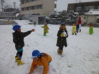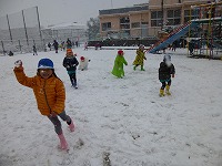寒さなんかへっちゃらで、田辺幼稚園の子供たちは、思い切り雪遊びを楽しみました。