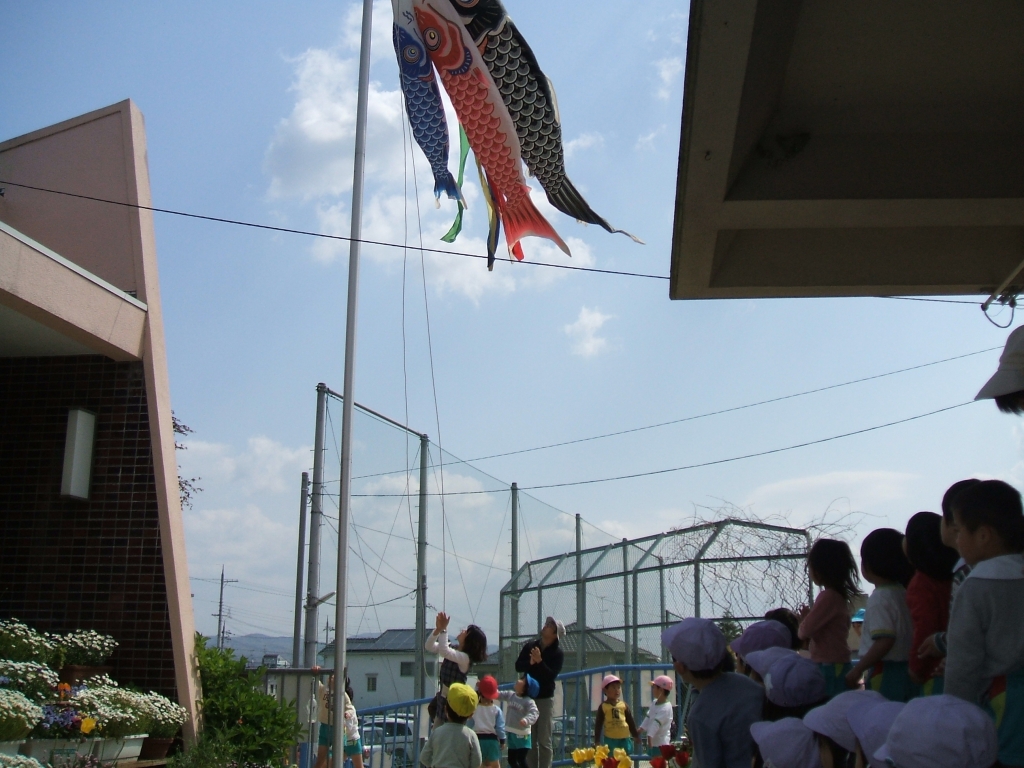 みんなで、こいのぼりをあげました。こいのぼりのように元気いっぱい育っていってほしいです。