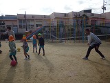 片付けの後は、ひまわり組ゆり組と転がしドッチ!!腰をかがめて本気モード全開のモリー先生でした☆