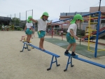 そーっと平均台の上を歩いたり・・・
