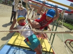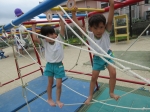 絡まるロープに苦戦しながらも、友達と一緒にはずしていきます。