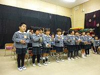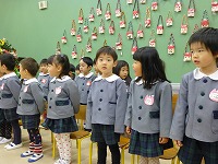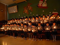 厳かな雰囲気の中、年長さんのキャンドルサービスでクリスマス会がスタートしました。