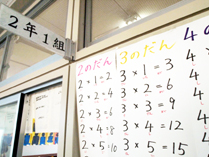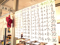 2年生の教室の入り口に、九九の表がぶら下がっていました。