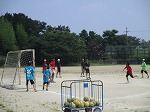 こまめに水分補給を行いながら、必至でコーチの指導を受けている子どもたちです。
