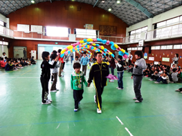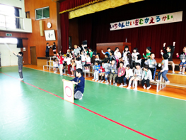 児童会の運営委員が考えた、○×クイズがあったのですが、かなり難しい問題です。 「教頭先生の名前は『とくだまさひと』である。まるか、ばつか?」 答えは「ばつ」。 正解は「とくだまさと」。 かなりハードルの高い問題が続きましたが、子ども達は大喜び。正解する度に大歓声があがりました。
