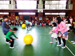 6年生と1年生とがペアを組み、「大玉ころがし」もしました。 順位が激しく入れ替わるデッドヒートの連続!! 見ていて飽きないレースになりました。