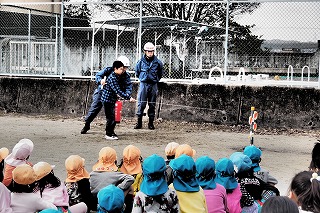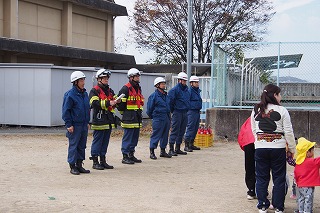 *消防署からの大事なお話を小さい子どもたちも真剣に聞いていました。