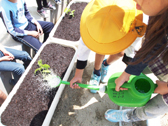 <写真3:植え方た後は、たっぷり水やりをします。>